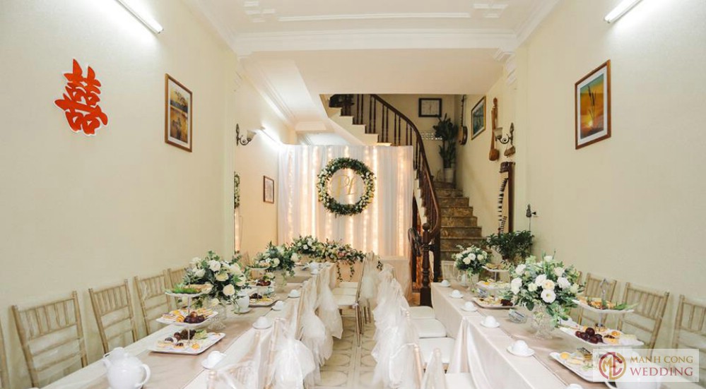 Để có một lễ cưới trọn vẹn, hoàn chỉnh theo ý muốn thì trước hết bạn phải có sự chuẩn bị hết sức cẩn thận và đầy đủ. Nhưng sự chuẩn bị đó phải được thực hành tốt. Và chúng tôi, cưới hỏi Mạnh Công, một đơn vị cưới hỏi uy tín, sẽ giúp bạn làm tiếp các công việc mà bạn chưa làm được như trang trí cổng cưới, phòng cưới, chuẩn bị hoa, khăn trải bàn...